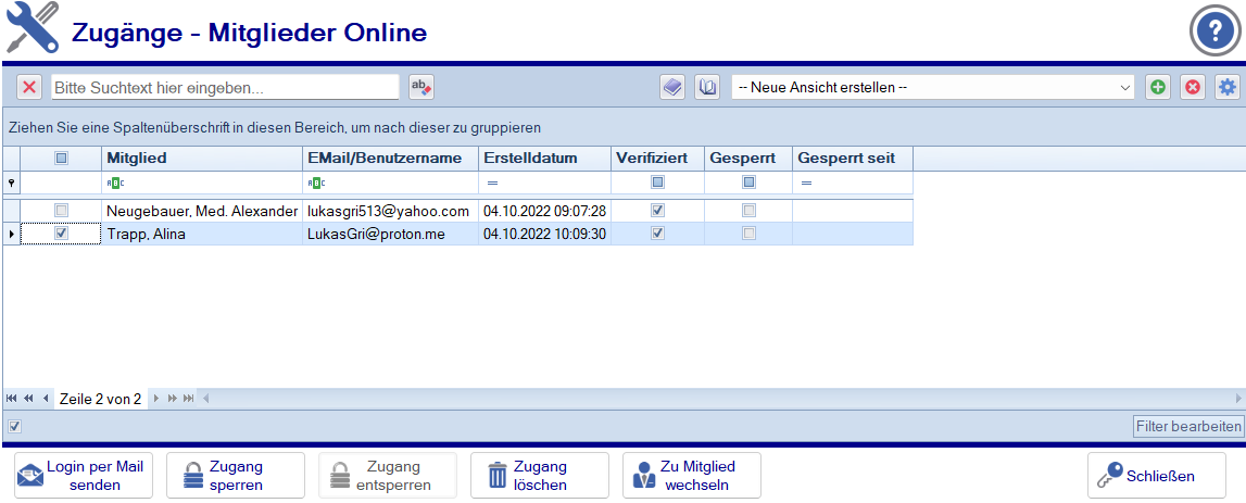Hiermit können sie ausgewählte Mitglieder sperren, beziehungsweise entsperren.